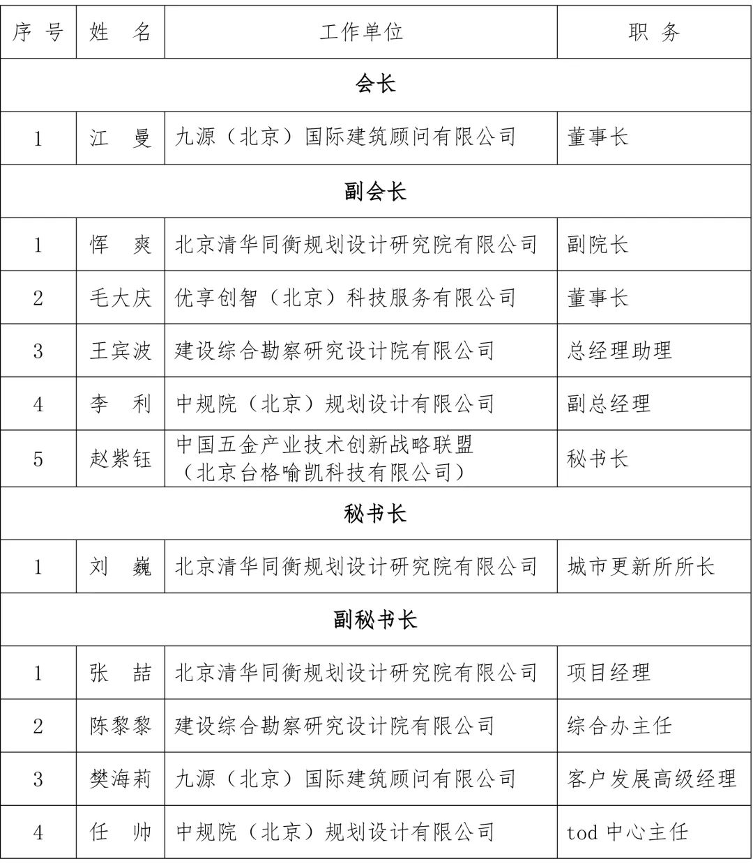 设计与运营分会组织机构人员名单如下