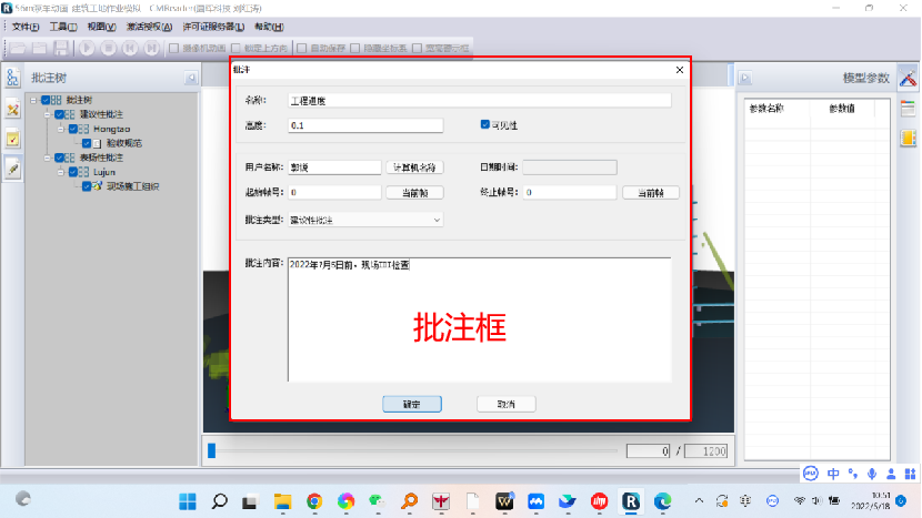 图三:编辑本地批注(批注名称、用户名称、批注类型、批注内容等)