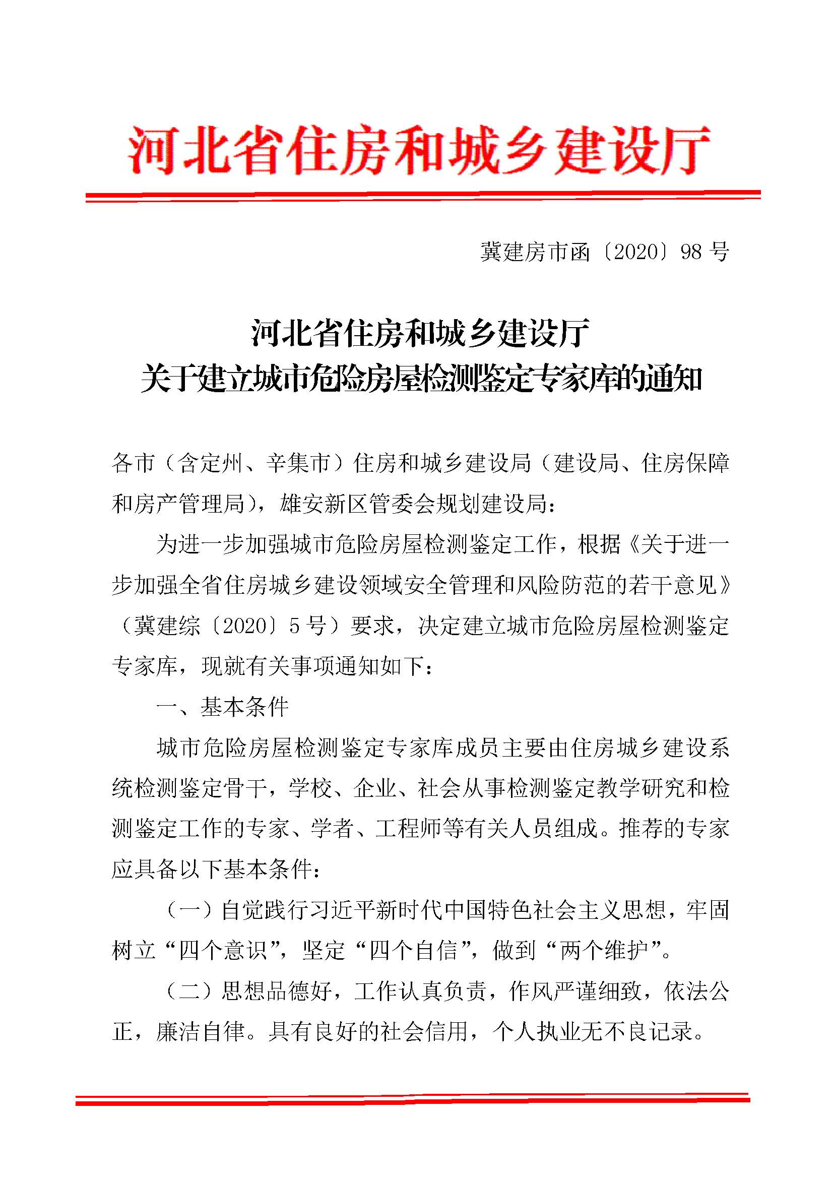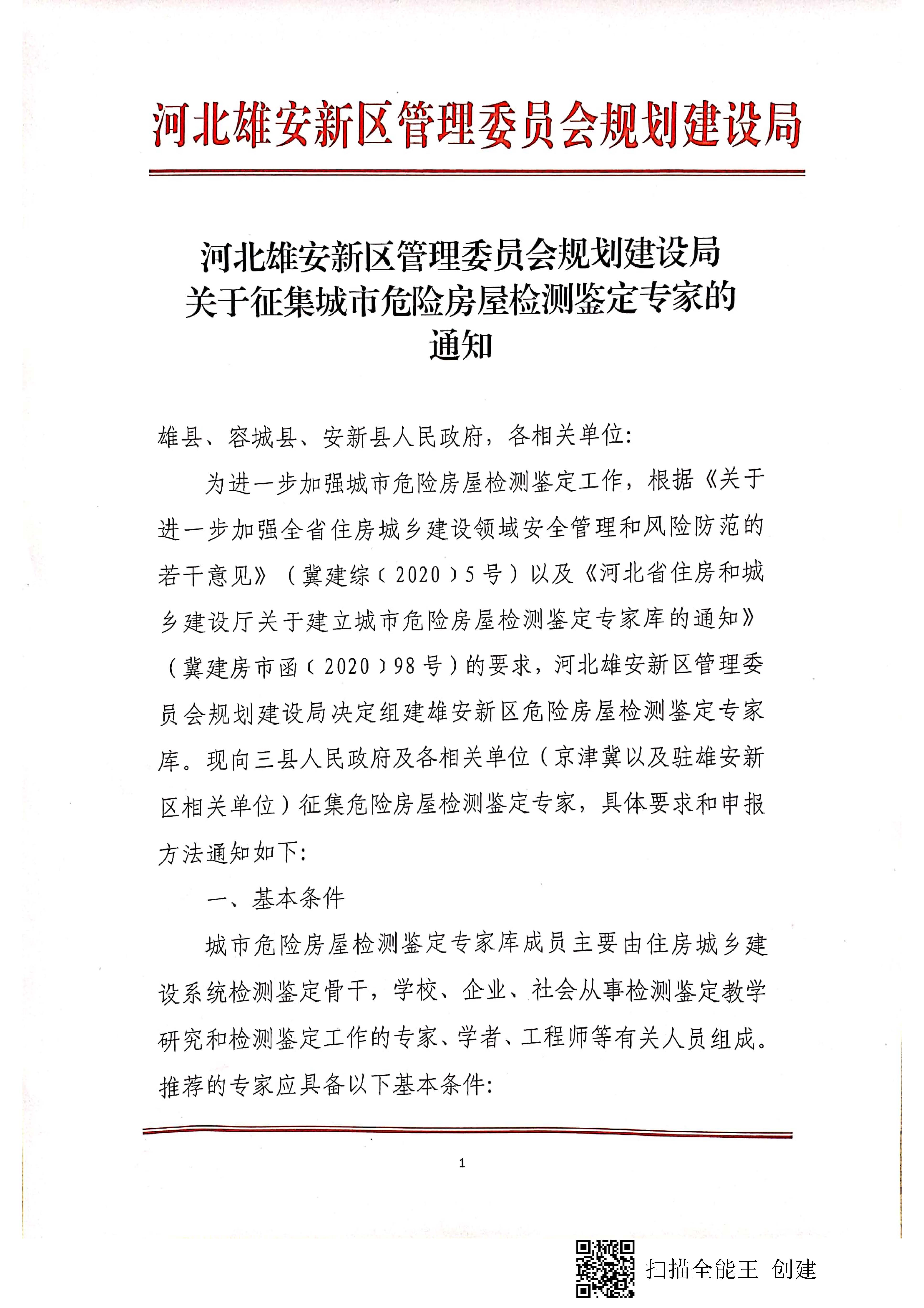 雄安新区管理委员会规划建设局关于征集城市危险房屋检测鉴定专家的通知_2020821103357.pdf