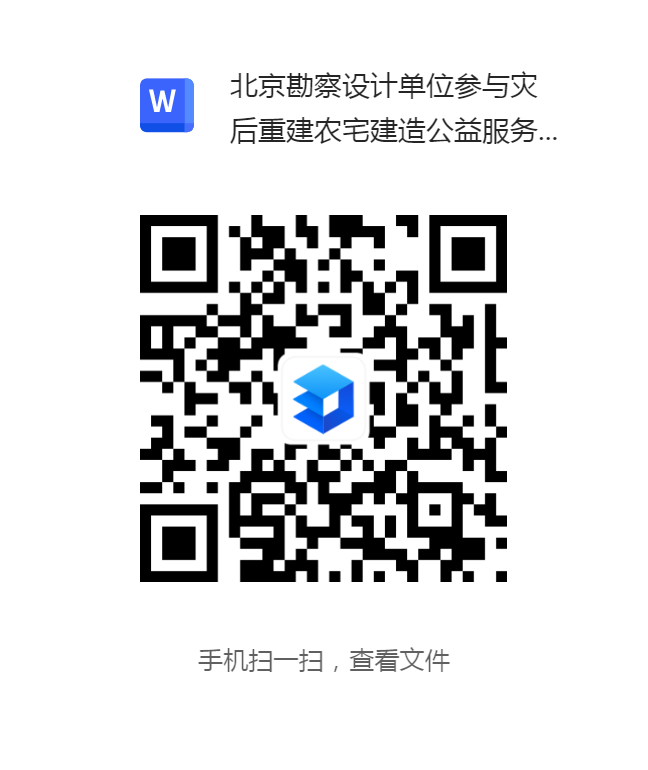 附件:北京勘察设计单位参与灾后恢复重建农宅建造公益服务工作报名表(扫描下方二维码或者点击“阅读原文”即可获取)