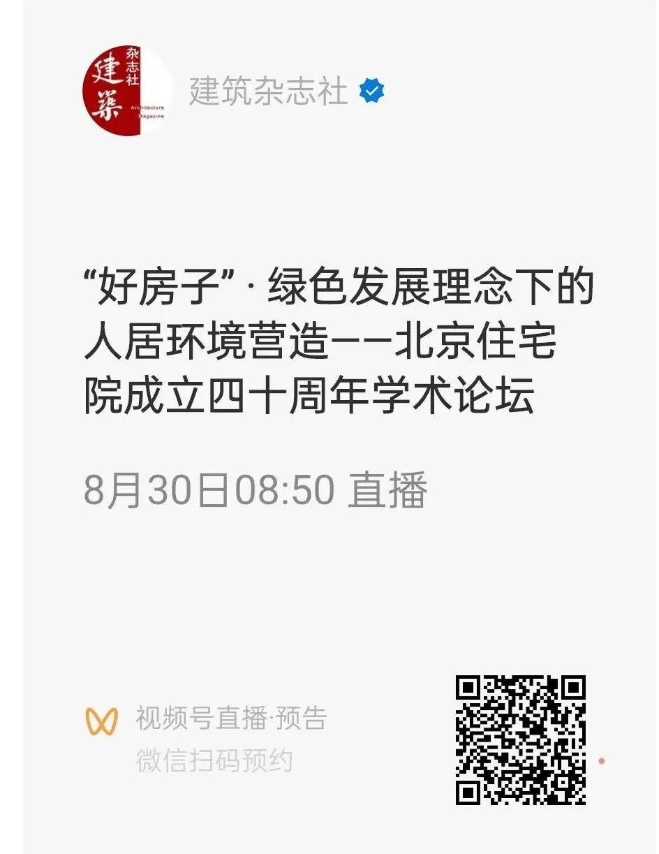 【8月30日 · 线上直播】“好房子” · 绿色发展理念下的人居环境营造—北京住宅院建院四十周年学术论坛