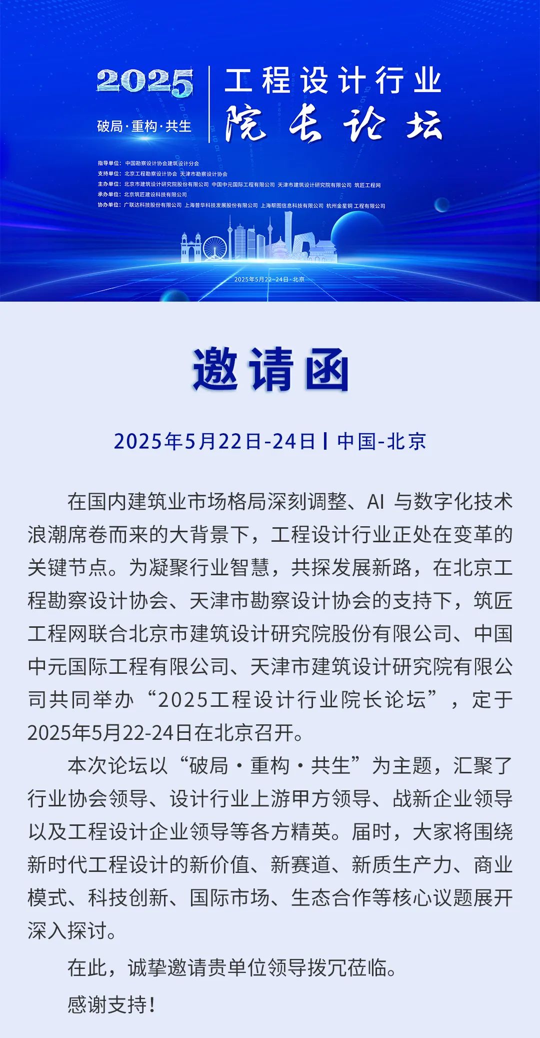 转发 | 邀请函 ——2025工程设计行业院长论坛5月22-24日在京召开